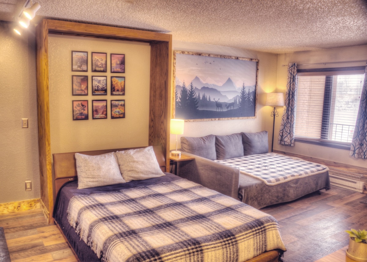 Nestled a mountain resort, this stylish modern studio condo offers a perfect sanctuary for adventure seekers and nature lovers. The sleek and contemporary design provides a cozy yet luxurious escape. During the day, the resort's inviting pool and hot tubs beckon with their warm embrace, after a day of thrilling skiing or mountain adventure. A cozy retreat or a launching pad for alpine adventures, this studio condo promises the perfect blend of modern comfort and outdoor excitement.
