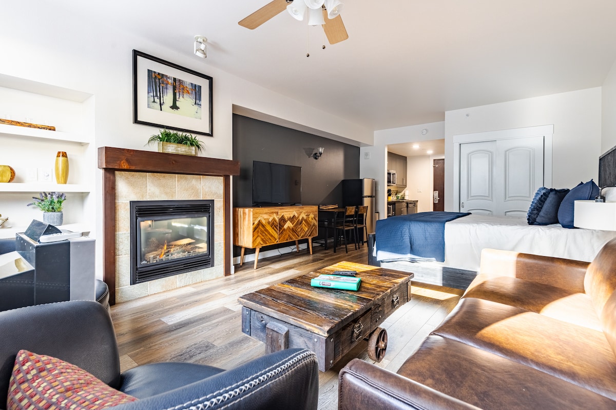 Fireside Haven is a cozy studio located on a secluded spot RIGHT on the Fraser River, yet is walkable to all that downtown Winter Park has to offer. Dine-out, shop, enjoy coffee at a café, cocktails at happy hour, hike/bike and catch the ski shuttle all within a five-minute walk from your front door! You will have a king-size bed, queen-size sofa sleeper, full kitchen, bathroom, fireplace, private patio & ski closet.
