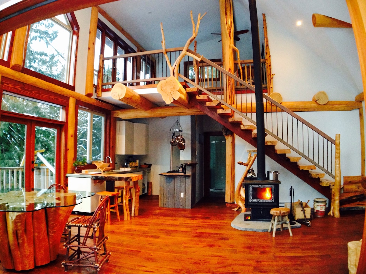 私人湖滨原木小屋,提供独木舟和皮划艇