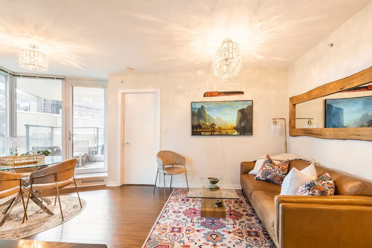 LOCATION LOCATION LOCATION!! This Listing is for the MASTER BEDROOM SUITE only, in the Most Central location Downtown, with fully-furnished spacious Patio. Free Gym, heated Swimming Pool, Hot Tub (Jacuzzi), Sauna (Steam Room), En-suite Washer/Dryer, High-Speed WiFi Internet, fully equipped kitchen. Paid Parking in the building. Located between Gastown & Yaletown. Close to BC Place, Rogers Arena, Canada Place, Parq Hotel & Casino, Convention Centre. Perfect for conference /convention attendees.