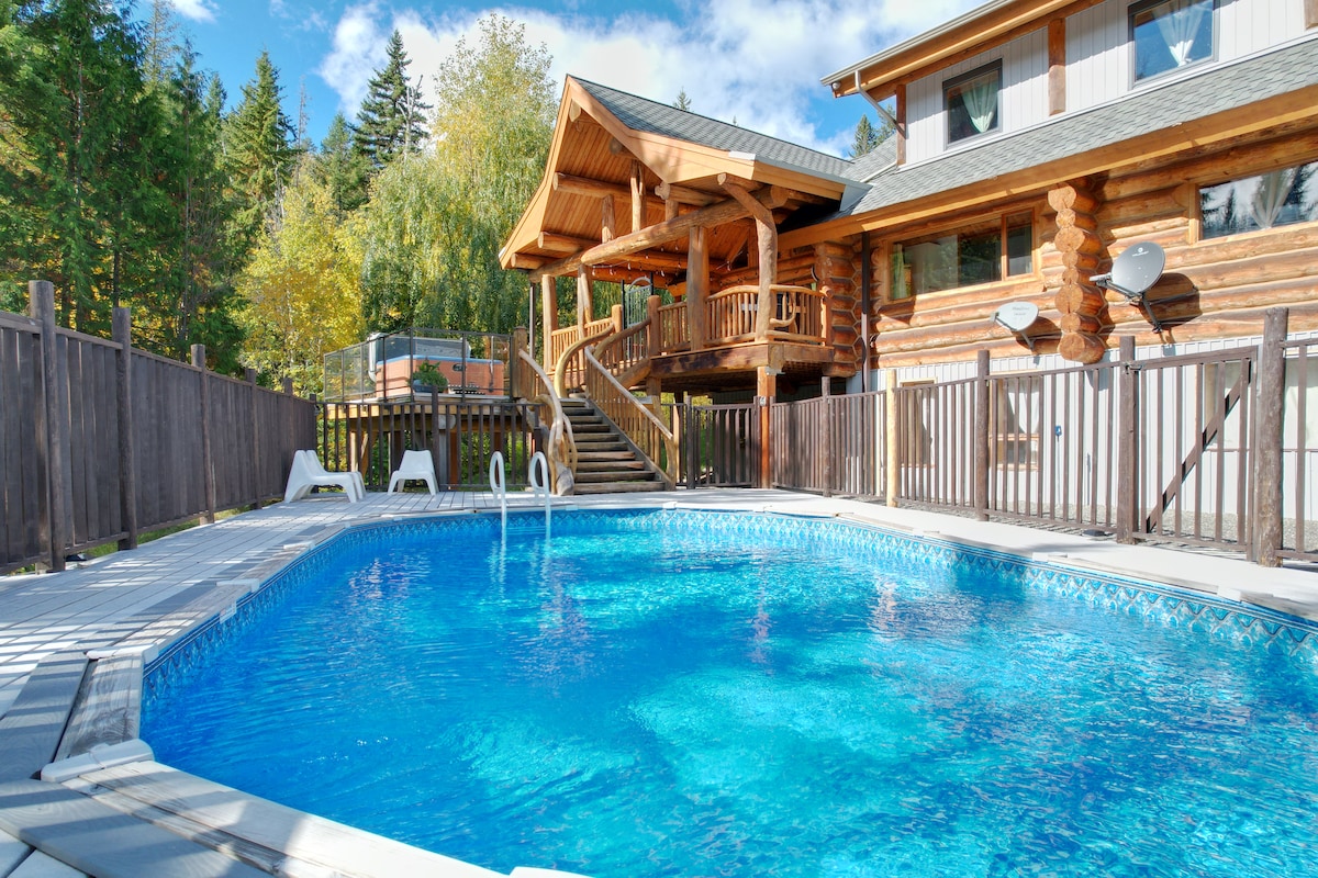 This charming log house is situated on a family owned and operated 160-acre forested property a short drive north of Sun Peaks Resort. Take in the serenity of this remote and unique property while enjoying the modern comforts of a freshly furnished home. Includes a hot tub overlooking the forest, and a 4ft deep pool for summer time fun! We also have miles upon miles of trails that go all over the mountain, that you can access directly from the property. Ideal for ATVs or side-by-sides.