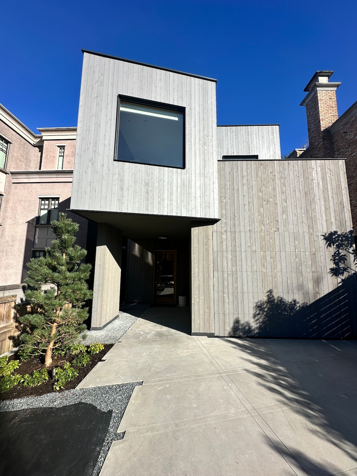 Sea Ranch California modern inspired new build on Vancouver's oceanfront Golden Mile. Completed in February 2026. floor to ceiling glass, rustic stone floors, oceanfront custom cedar hot tub with 270 degree views from howe sound to the downtown skyline. interiors by award winning Designer of the Year (Western Living/House & Home Magazine). Nothing like it in the city. 15 mins to soccer stadium.