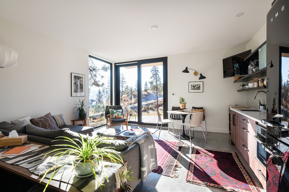 This perfect getaway space is nestled near the rivers and mountains of Lytton. There is a fully-equipped kitchen (oven, stove, toaster, fridge), a comfy couch, a full bathroom with shower, and a double bed in the loft above. We use natural and refillable products and an energy-efficient heat pump for heating and cooling. The space is small but feels open and peaceful. Cook a meal, cozy up, and enjoy the view.