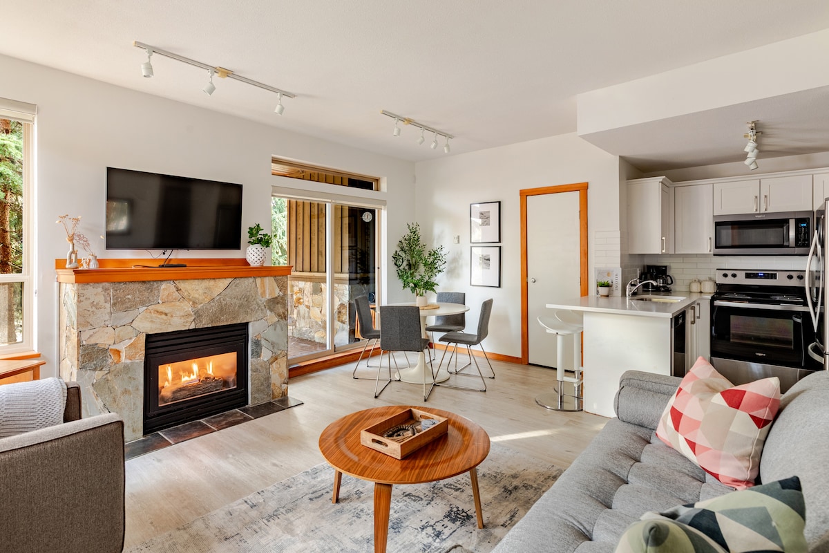 A cozy, mid-century inspired mountain retreat in Whistler, BC. PERKS OF THE LOCATION: ◦ 3 min walk from new gondola ◦ 5 min drive to Whistler Village ◦ Steps from some of the best shops/restaurants in Whistler ◦ Easy access to the highway PERKS OF THE SPACE: ◦ A trendy, cozy, midcentury modern interior ◦ Luxury duvet and pillows ◦ Electric fireplace ◦ High quality furnishings in a newly renovated space ◦ Unique vintage pieces throughout ◦ Record player ◦ Lots of natural light