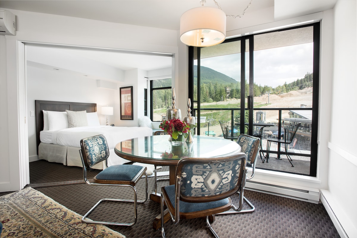 5 Star Suite! The Famous Carleton Lodge! ⛷ Enjoy our gorgeous updated two bedroom/2 bathroom SKI IN/SKI OUT Mountain View condo that is nestled in the heart of Whistler Village. At the BASE of Whistler/Blackcomb Mountains both lifts. Walk out and Ski, Bike, dine or shop! You can cozy up to the fire and enjoy the scenery of skiers and/or bikers fly down the hill from your private balcony. FREE parking, A/C, In Suite Laundry, Private Ski/Bike storage, Stunning PATIO views of all the action