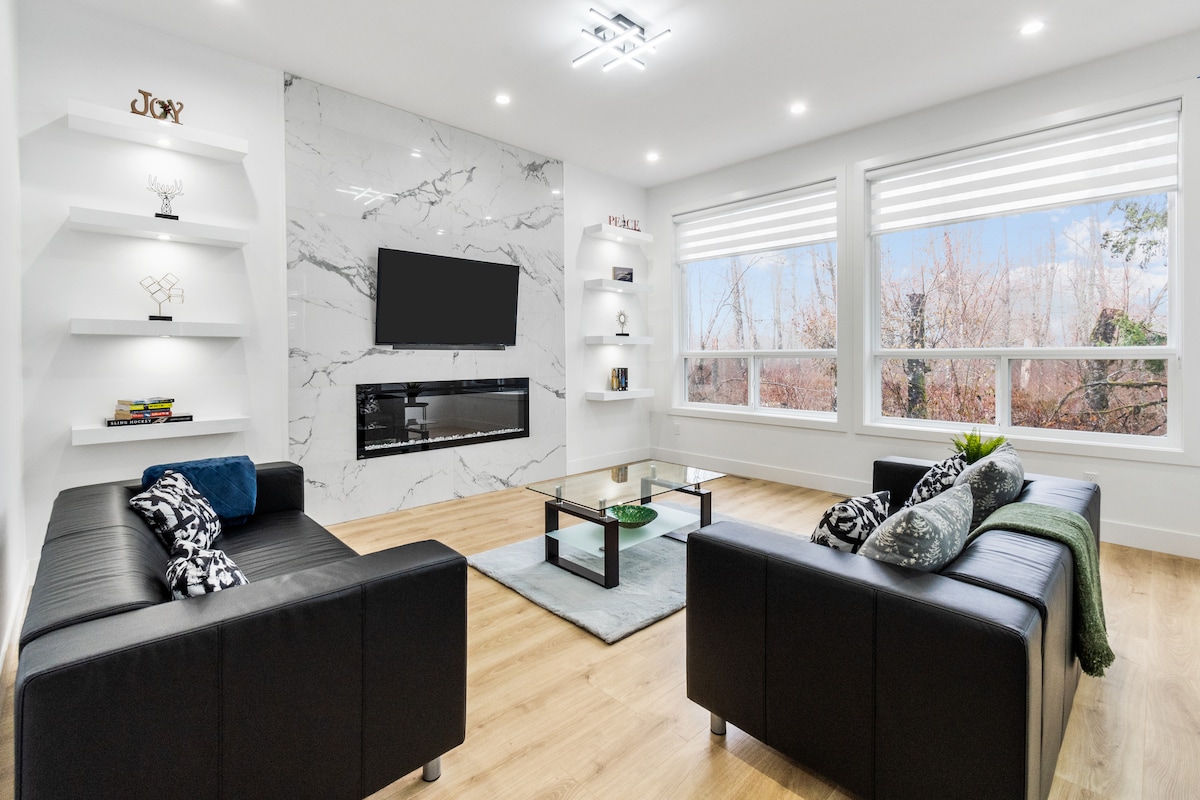 ✦ Sleeps up to 8 guests comfortably ✦ Private dock and panoramic lake + mountain views ✦ Chef’s kitchen with stainless steel appliances ✦ Two living rooms: cozy main level + loft TV lounge ✦ Air conditioning, heating, and a wood-burning fireplace ✦ Large patio with outdoor dining and a gas BBQ ✦ Smart TV with Crave, Sportsnet+ & more ✦ Free parking and high-speed Wi-Fi