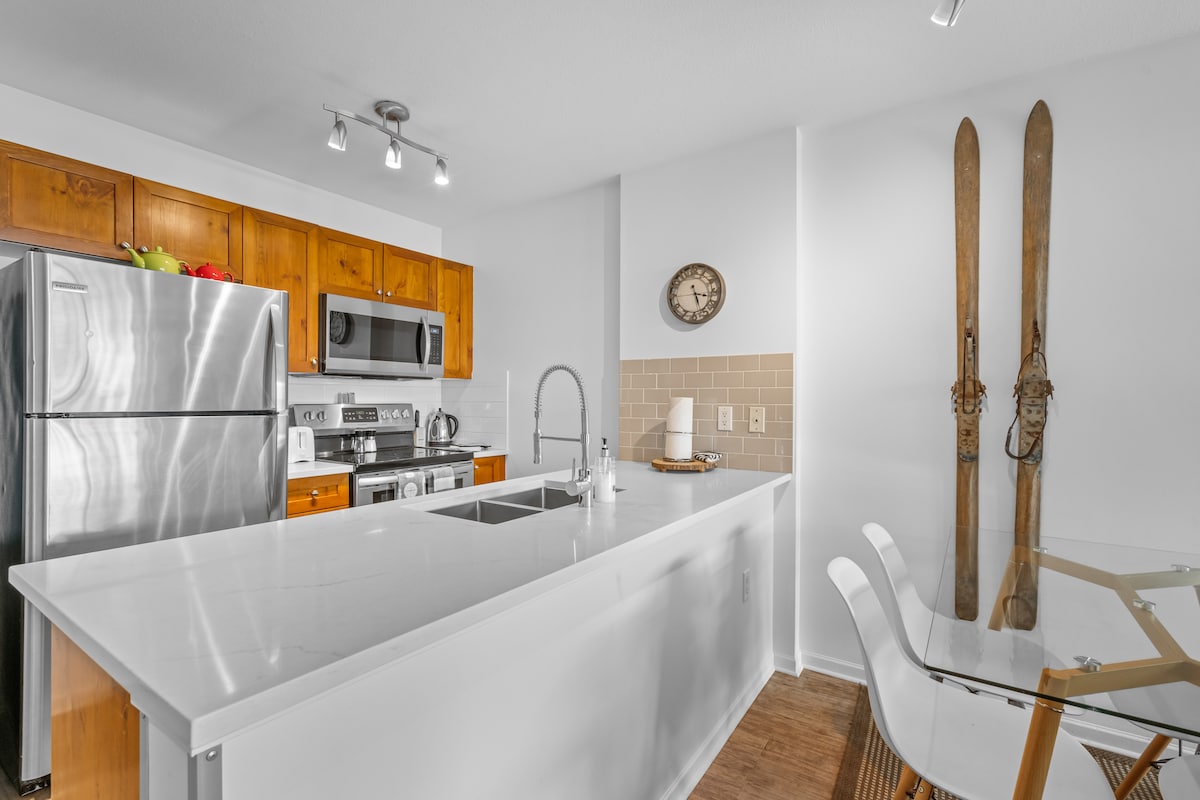 The Creekside Cozy Condo is a modern, 1- bedroom condo in Whistler’s Creekside. Recently renovated, this mountain retreat comes with a KING-size bed, heated floors, and Nespresso coffee machine. Ideally located across the street from picturesque Creekside Village and a 5-minute walk from the Creekside Gondola, this is the perfect place for couples, families, or friends looking for a mountain escape! This space is ideally suited for 2 guests but can fit up to 4 if you're very well acquainted!