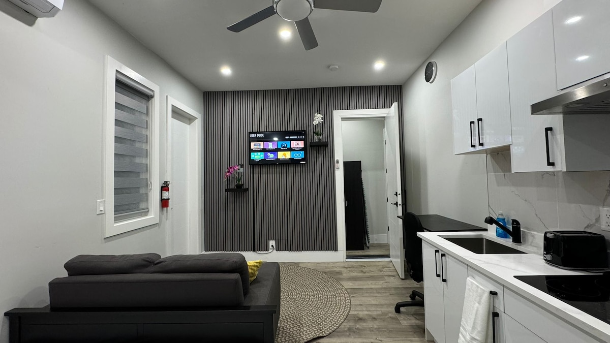 Escape to this charming modern farmhouse-inspired space located in beautiful Langley, BC. Our cozy retreat is the perfect place to call home during your stay and is is fully equipped with a kitchen, laundry facilities, bathroom, a comfortable queen-sized bed, as well as a pull-out couch. The space features plenty of natural light and cozy furnishings. Whether you're looking to cook a delicious meal or simply relax and unwind, our space has everything you need to make the most of your stay.