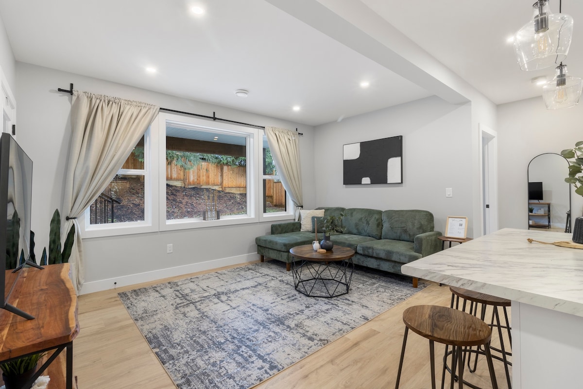 Guests love our top 5% home: sparkling clean, beautifully designed, and incredibly comfortable. Boutique-style suite with high ceilings, a luxurious king bed, and comfort better than a hotel stay. Enjoy a sunny living room, in-suite laundry, 1G Wi-Fi, 52" smart TV with Netflix, free coffee & tea, private entry, and free parking. Thermostat heating and naturally cool in summer. Walk to transit, parks, and trails; a short drive to shopping. Perfect for couples, families, solo, or business stays.