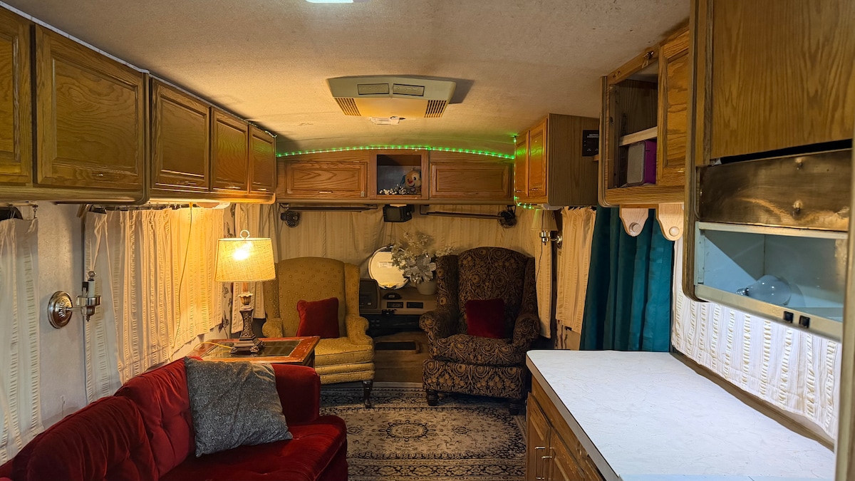 Welcome to your peaceful getaway! Tucked away in nature, our camping space and RV offers the perfect mix of comfort and romance. The RV comes with a comfy queen sized bed and a dining area that easily converts to a second double sized bed-perfect for snuggling up or hosting an extra guest. Step outside to a spacious campsite with a spring fed creek flowing right beside you, the ideal spot for coffee, conversation, star gazing or dipping your toes in the cool refreshing water!