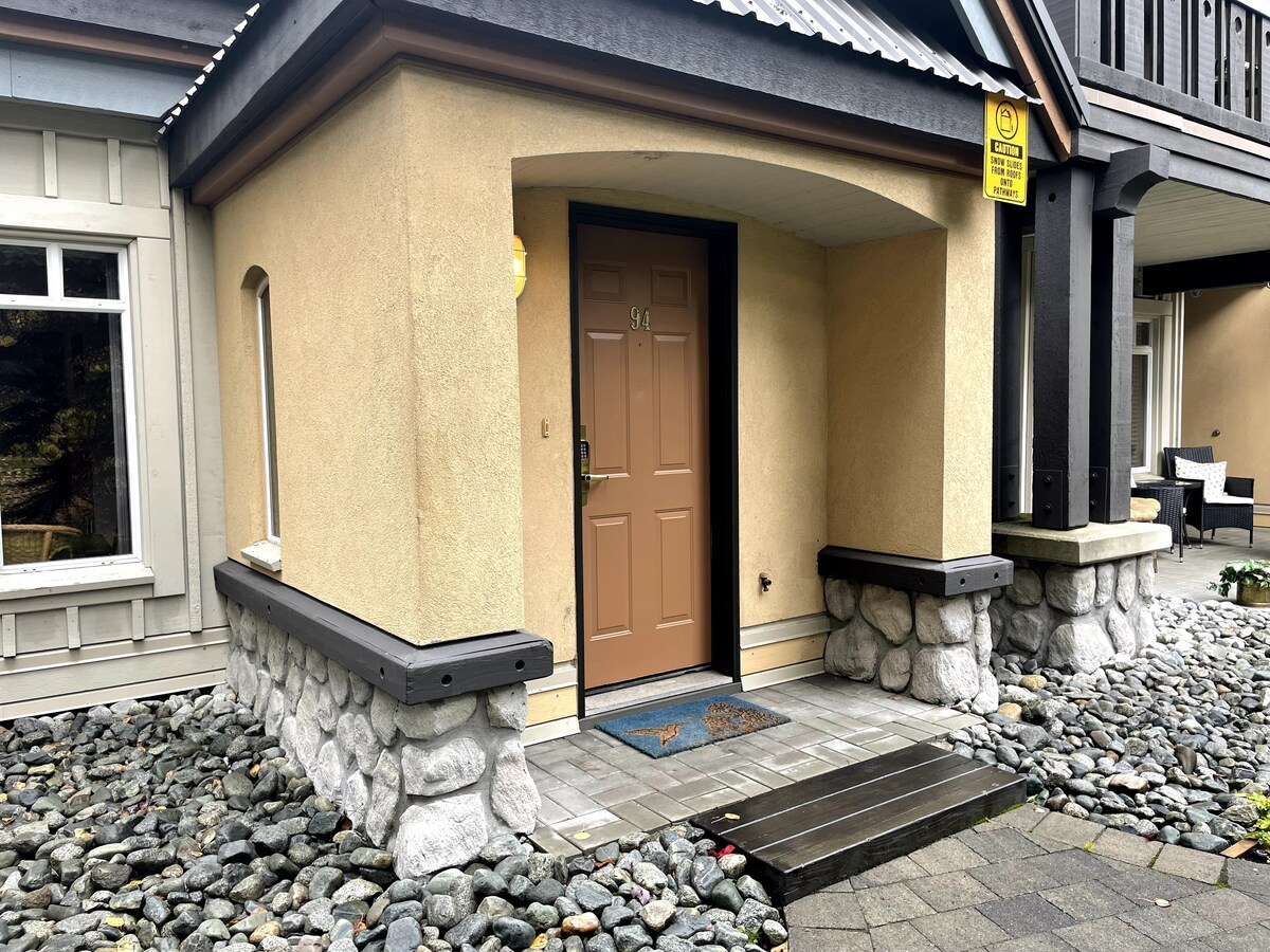 Our updated one-level townhouse is just minutes away from main Whistler village and across from Whistler marketplace and Olympic Plaza. Our home is full of amenities to make your stay comfortable. Enjoy our private hot tub or steps away use the complex heated pool. Use the free ski season shuttle or a 10 minute walk to the lifts. A short walk to Olympic Plaza will take you to a great playground for the little ones and a chance to pick up local goodies.