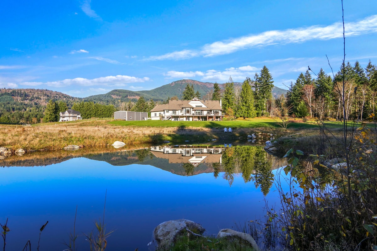Escape from urban life, you can relax with the family, friends or team members at this beautiful, private, elegant and peaceful place. Guests shall stay with wildflowers and animals. For diverse amenities, we have Swing chair, Hammock, Trampoline, Hot tub, Barbecue stove, Guitar, Pool/Ping pong table, Viewing fish, Wood fireplace, Karaoke, Audio system, 70' TV for fun, and we have reading facilities for work/study either. Municipal STR License No. 00104261 BC STR Registration No. H440854823