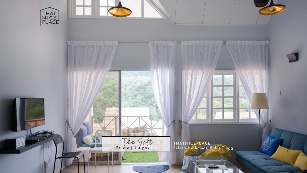The Livingstone, ThatNicePlace, Selesa Hillhomes, Bukit Tinggi; a favourite unit with our guests. It is renovated, modern and cosy one-bedroom studio 500 sq. ft for 1-3 guests. It is on the ground level and offers easy access to lush greenery and fresh air. The bedroom (1Q) while a sofa bed in the living room is provided for the third guest. Much love has been poured into furnishing where you'll find rest, spirits revived and refreshed.