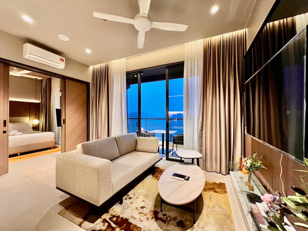 Enjoy breathtaking mountain and cloud views from your private suite at Antara Genting. Right above Antara Mall with link-bridge access to SkyAvenue. This modern 1BR suite fits 2–4 guests and features a TV Box, bathtub with bathboom & bubble booster, hot & cold water dispenser, and full kitchenette. Enjoy more than 50 facilities suitable for family trip in this serviced apartment.