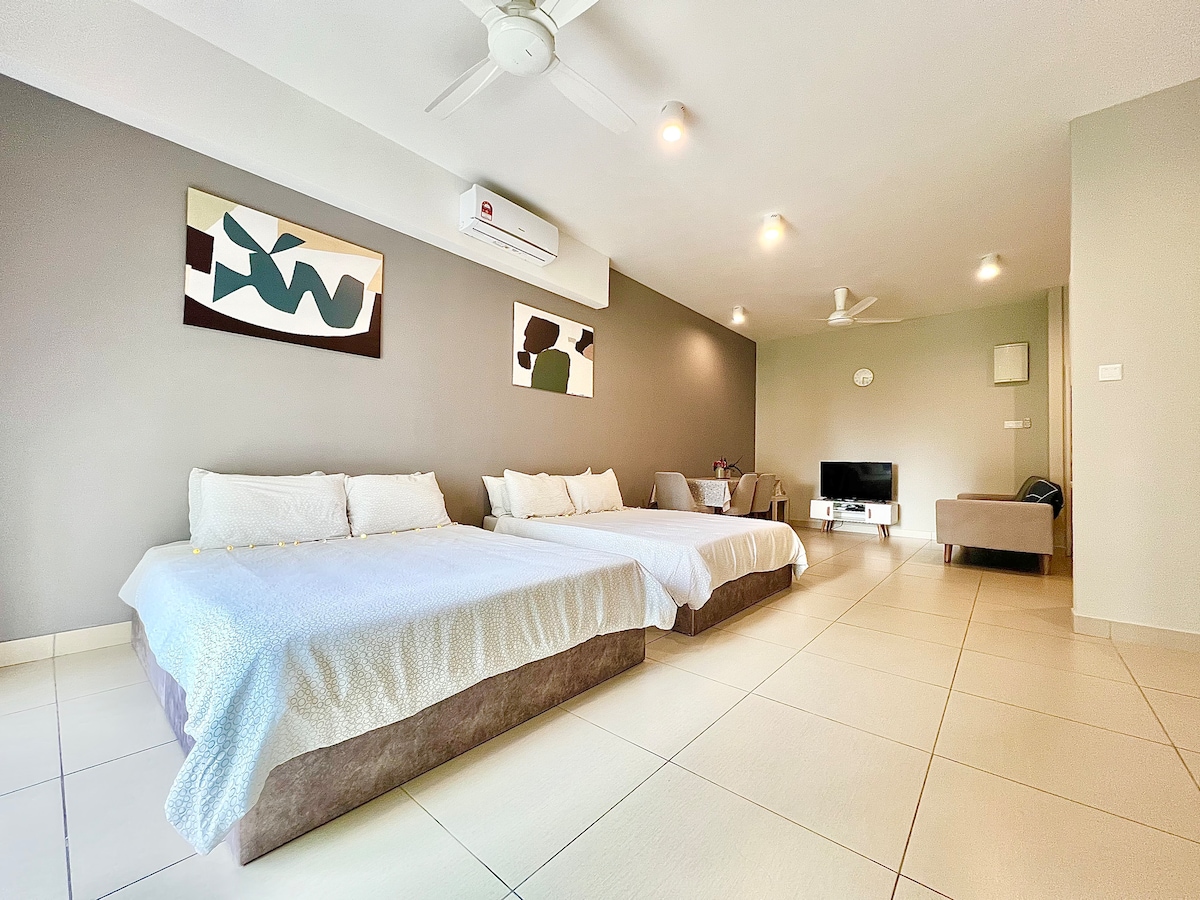 Modern Antara Genting Highlands apartment with bright living room, Smart TV, Astro streaming, high-speed WiFi, and an Automatic Mahjong Table for family fun. Open dining, cozy bedrooms with TVs, and stylish décor. Walking to Genting Casino, SkyWorlds Theme Park, Arena of Stars, SkyAvenue Mall, and Genting Cable Car within 15 minutes by the Link Bridge. —perfect for family or group getaways.