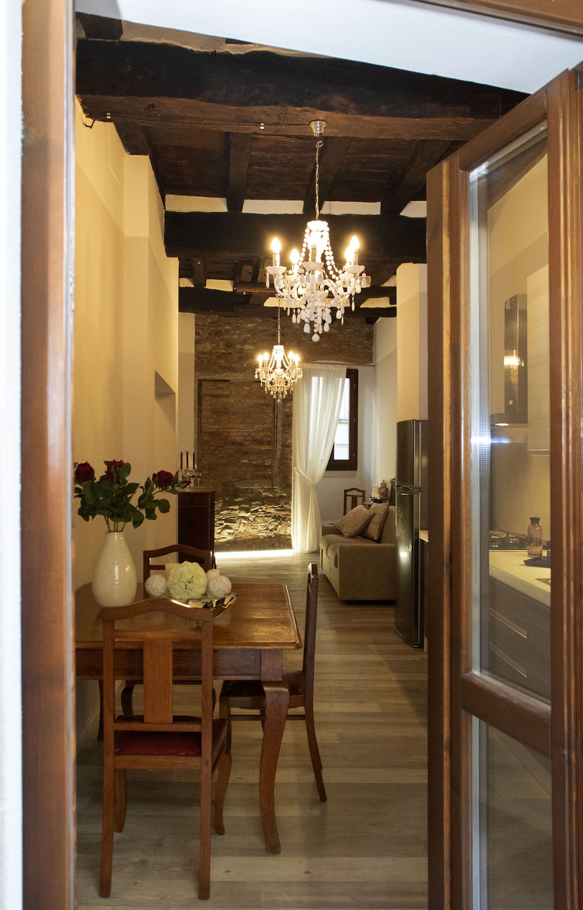 Newly renovated apartment in the center of the charming historical town of Poppi. Enjoy the italian life at its best, while staying here. The apartment has 2 double bedrooms, each with a 1,60cm mattress, 1 bathroom with shower, fully equipped kitchen with dishwasher, oven and induction stove, large living room with TV. The apartment is located in the historical city center, right at the exit gate "Porta Porrena", which exit with a beautiful view of the valely.