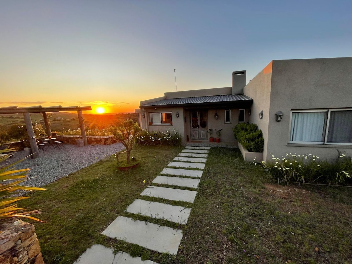Pequeña y acogedora casa en las sierras minuanas, con hermosas vistas a las sierras para disfrutar durante todo el dia. A 5 minutos de la ciudad de Minas y a metros del Parque UTE permite disfrutar la tranquilidad de las sierras, aprovechando los servicios que ambos ofrecen La casa ofrece un monoambiente completamente equipado con cama matrimonial de plaza y media, living, kitchenette y baño completo. Amplia terraza con vistas panorámicas con living exterior y barbacoa americana