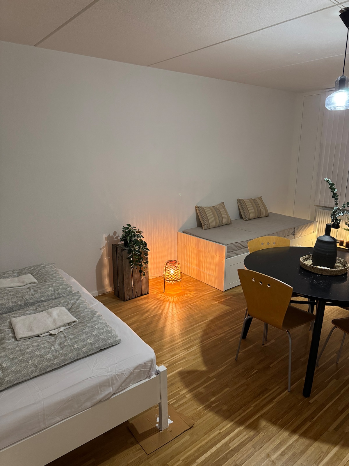 Nyd det simple liv i denne fredelige og centralt beliggende bolig. Lejligheden ligger 50 meter fra togstation som tager dig direkte ind til København. Indkøb og take-away i gåafstand. Perfekt til parret eller vennerne på en prisoverskuelig udflugt.