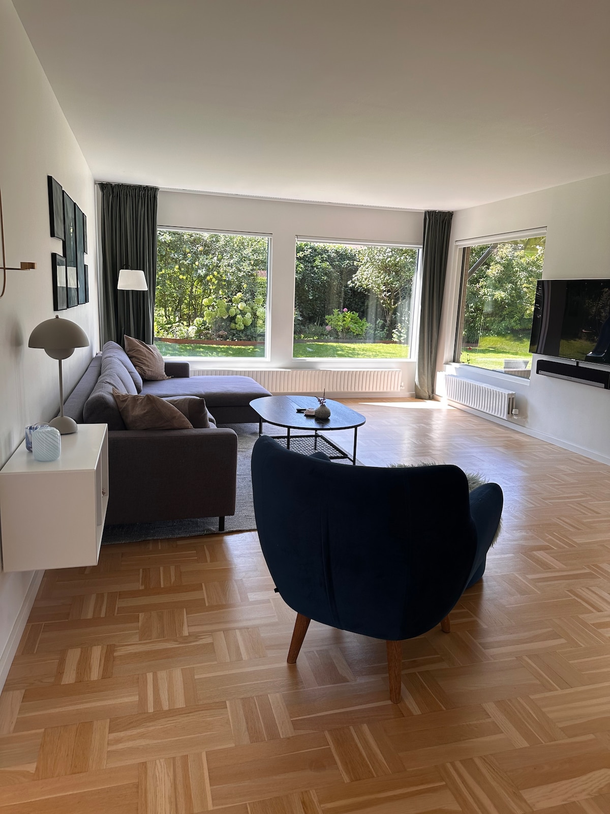 Lejligheden er i gadeplan, huset ligger i et roligt kvarter. På havesiden er der udsigt til mark og skov. Haven og terrassen kan frit benyttes af lejer. Fri parkering i gården eller på vejen. Huset indeholder lejligheden forneden samt 3 dobbeltværelser på 1. sal, som lejes ud enkeltvis eller samlet. Der er mulighed for aflåst rum til cykler.