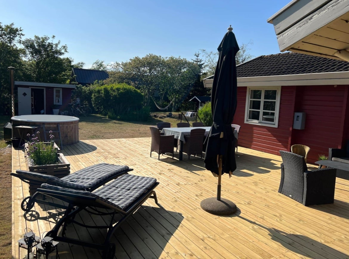 Nyd jeres ferie i vores sommerhus fra 2023 til 6 personer. Ideel til en familie eller en tur med vennerne. Huset udlejes ikke til ungdomsgrupper. Stuen rummer en spiseplads med langbord. Køkkenet er fuld udstyret. 3 soveværelser med dobbeltsenge, den ene kan laves til 2 enkelt senge. Det er er 2 dejlige badeværelser med bruser, det ene med et badekar og indendørs sauna med udsigt til markerne. Udendørs spa til 4 personer, udebruser og gasgrill. Multirum med bordtennis og spil. Oplader til bil.