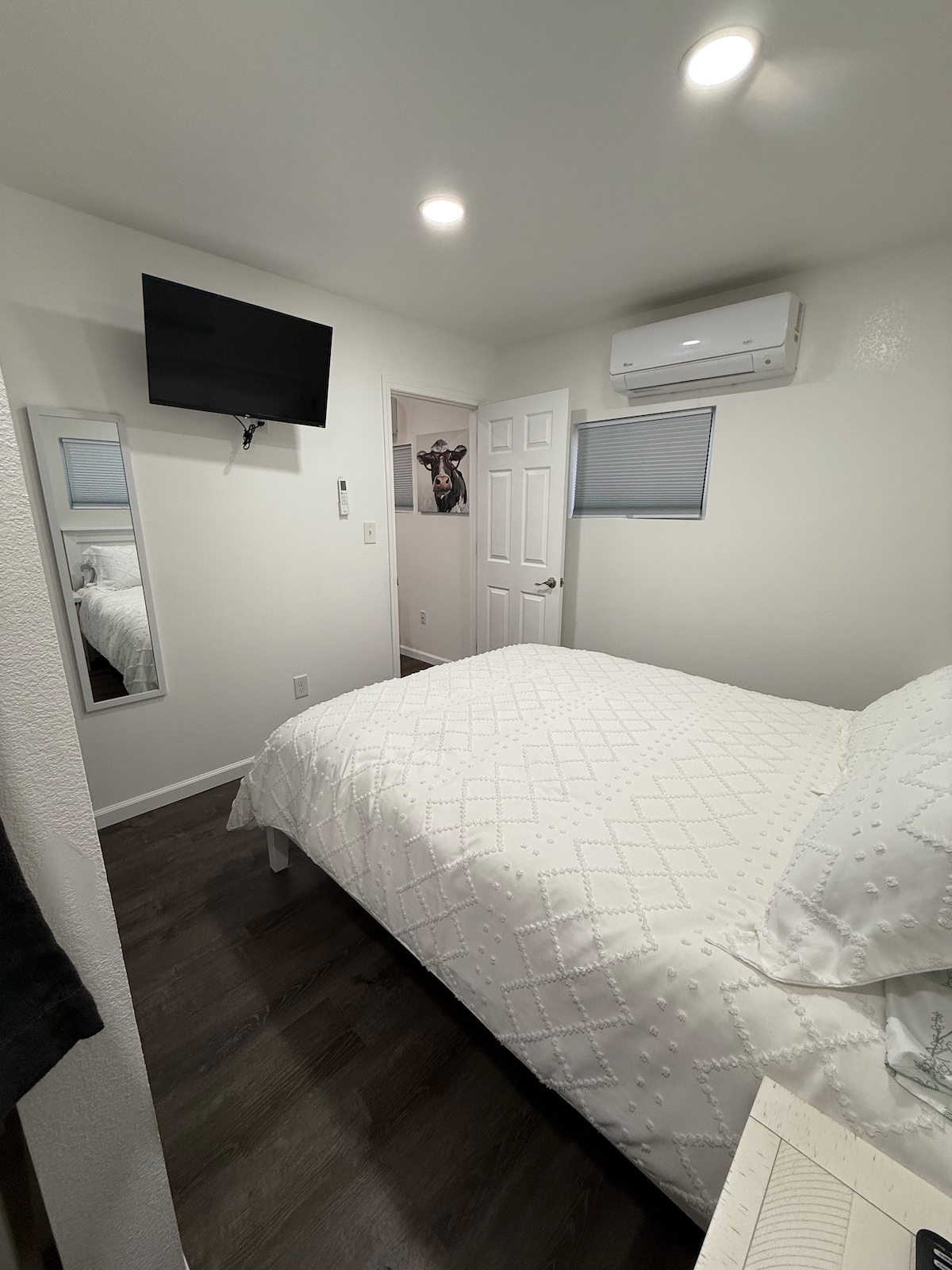 Welcome to this refined 1,400 sq. ft. luxury basement apartment with a private entrance, set in a serene neighborhood near parks, shopping, Topgolf, dining, and entertainment. Featuring a gourmet kitchen, elegant living room with an 88” Smart TV, a primary suite with walk-in closet and 75” TV, a stylish guest room with queen bed and 52” TV, plus a private laundry room with full amenities—this residence offers comfort, sophistication, and convenience.