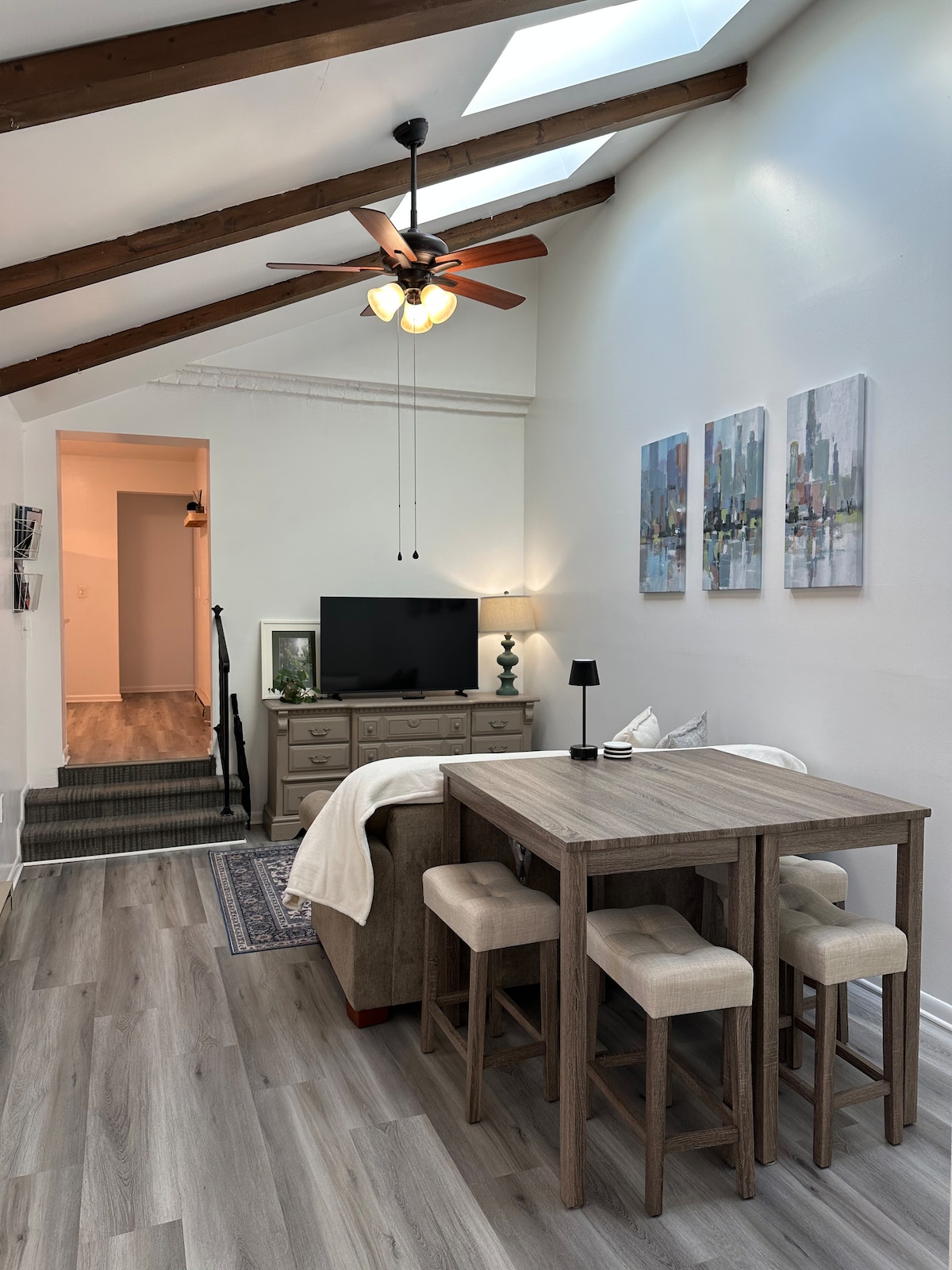 Within footsteps to Carroll Creek Promenade offering easy access to posh restaurants, fun Breweries, local shops and festivals galore! Modern remodel and furniture including a memory foam king bed. Enjoy your own apartment w/ wide open spaces & high ceilings that bring in fantastic light. Historic bldg. (circa 1840) with all the modern appointments to make your stay super comfortable & fun! Owners provide advice on their favorite places & restaurants! Easy self checkin. Free parking on site.