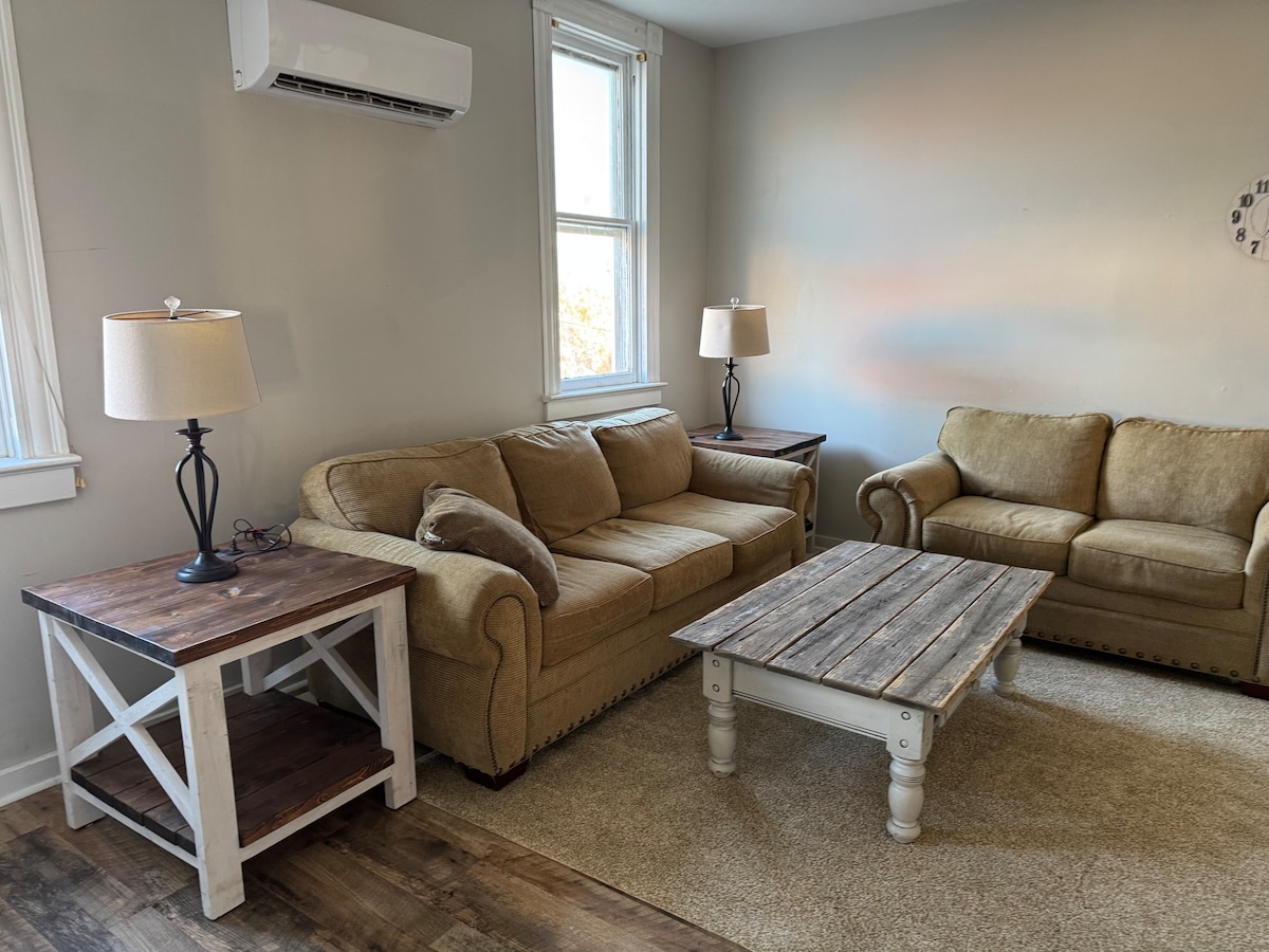This suite in our beautiful row home is centrally located in historic downtown Frederick and steps away from some of Frederick’s amazing restaurants, cafés, shops, pubs, parks & entertainment. This unit has a private entrance (up a spiral staircase) on the 2nd floor, with keyless entry. You will enter a spacious bedroom with a queen bed, gorgeous light, and a table for two. The luxury bathroom includes soaking tub, steam room, and walk-in shower. Unit includes Keurig, microwave & mini fridge.