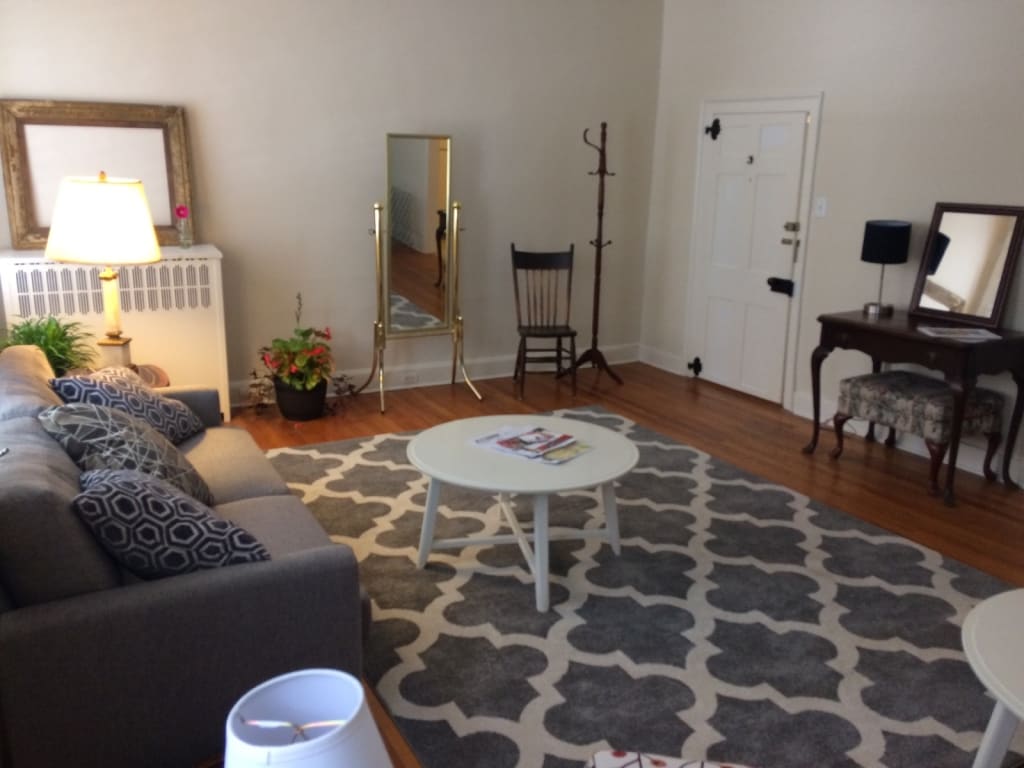 You will not find a better location in Historic Downtown Frederick. 1.5 blocks from Market St. on a quiet, tree-lined street. Enjoy this second-floor suite in a stately 115 year old home. Easy walk to restaurants, bars, and shops. Space includes two bedrooms, light filled sunroom, spacious bathroom with original tiling/fixtures and antique furniture. Using the separate entrance of a shared home, guests have a spacious private suite completely separated from hosts' residence.