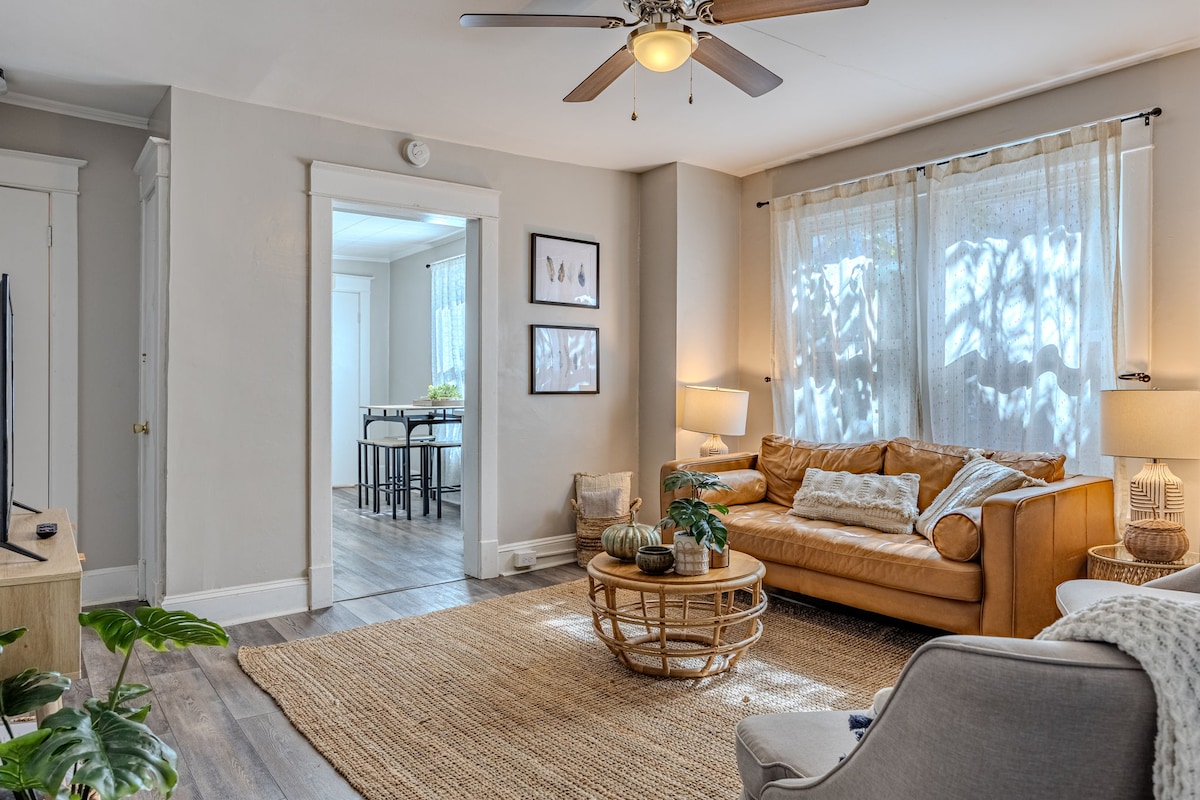 Hot tub. Peace and quiet — in downtown. Whether you're visiting for a romantic weekend, catching up with an old friend, or traveling solo with your dog, this oversized two-floor downtown Frederick flat gives you the space (and quiet) to unwind. A private hot tub, sun-drenched rooms, and vintage charm, this thoughtfully designed space is perfect for relaxing after a day of exploring Frederick. Walk to breweries, coffee shops, boutiques, and local restaurants. Dog-friendly