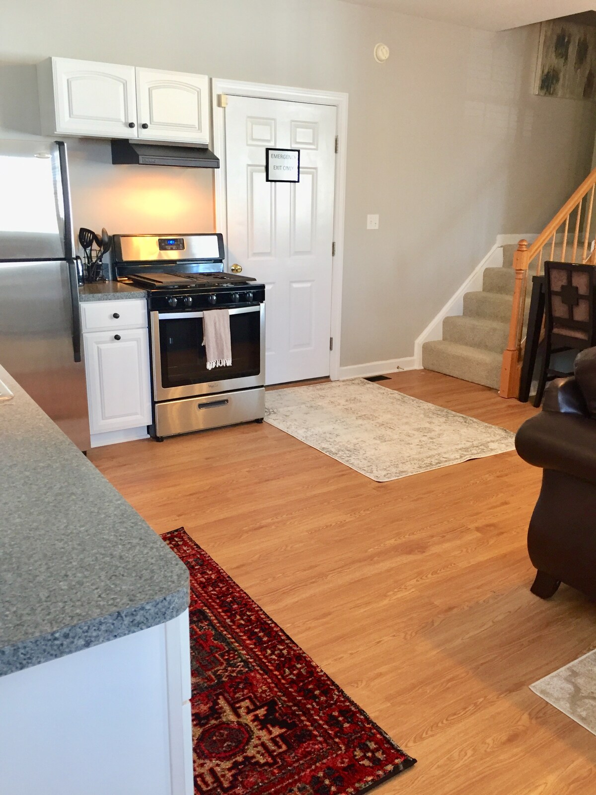舒适的整套公寓设计师厨房,距离世博会4英里