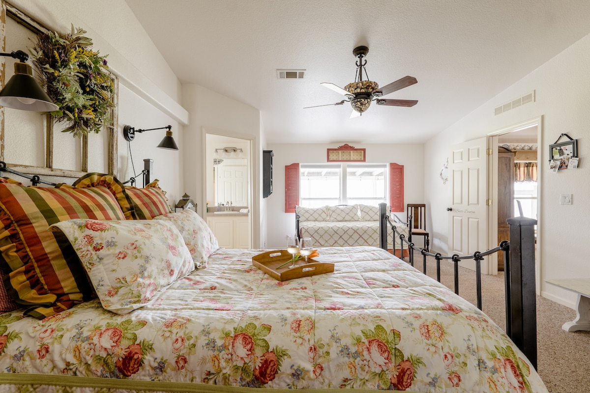 A peaceful retreat in the heart of Fredericksburg. The Sage Room is one of three cozy guest rooms inside our family home on Mulberry Street, where we’ve welcomed travelers for over a decade. It’s perfect for guests who value comfort, connection, and a true Hill Country experience with local hosts nearby to share the best of town.