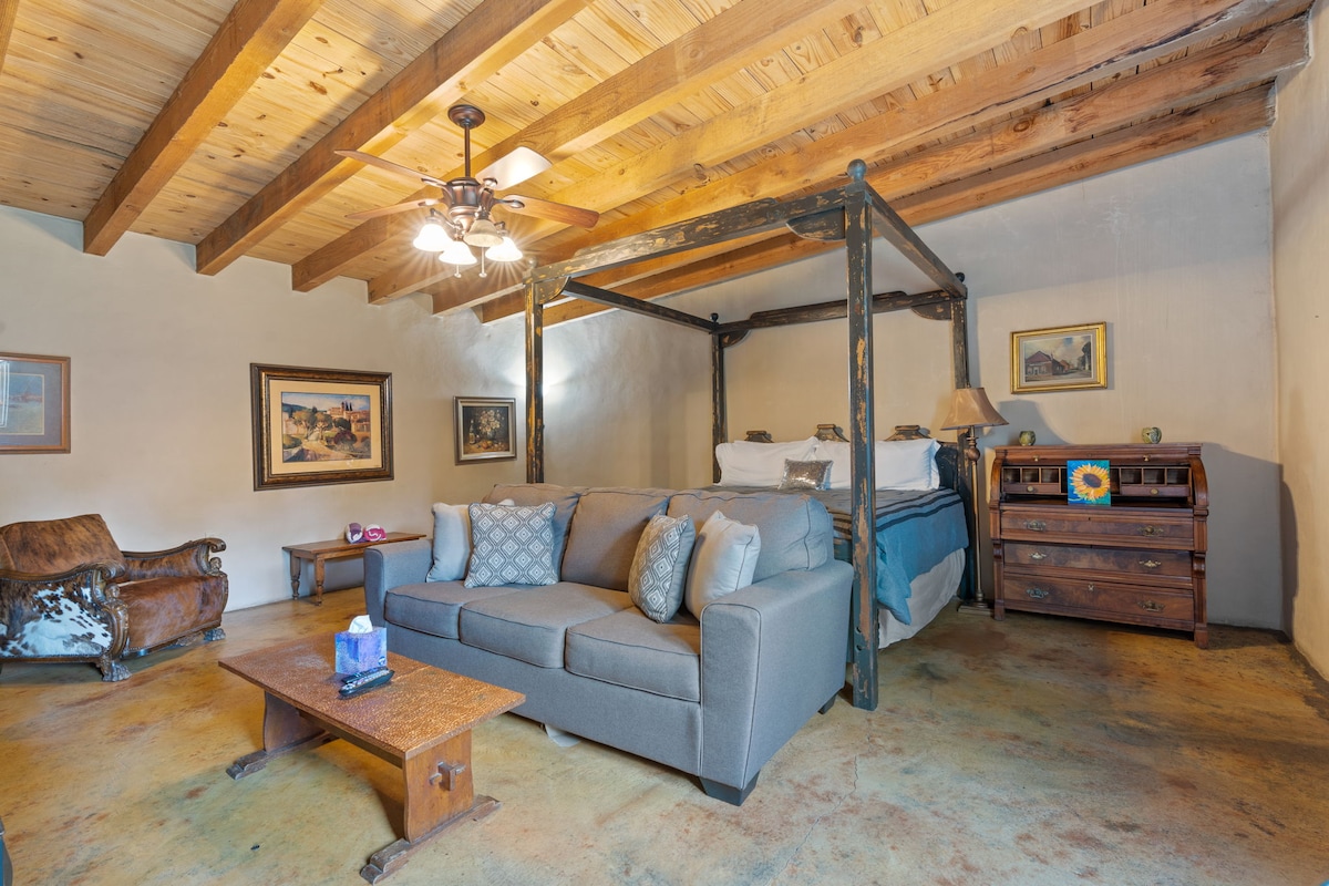 Book NOW for the ultimate Superhost experience! Proud Superhosts for 5 years, we temporarily lost Superhost status due to being shut down for a year-long remodel of the property in 2024. The Barnhouse is an architect & history lover's dream! Settled at the back of the private, gated ranch, you'll enjoy the large fire pit (firewood incl!) & massive patio. 8 mins to downtown, escape the hustle & bustle fireside when sunset turns into a massive star-filled sky!