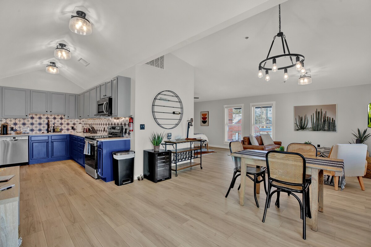 Enjoy a stylish experience at this centrally-located, newly built, 1 bed/1 bath condo place. You'll be in your own private avode with a luxurious king bed or soak in the large walk-in shower. Unwind in the living room area with the smart TV, and whip up a favorite meal in the fully equipped kitchen. When the day is done, relax in the hot tub on the private fenced patio! Don't forget to bring the wine!