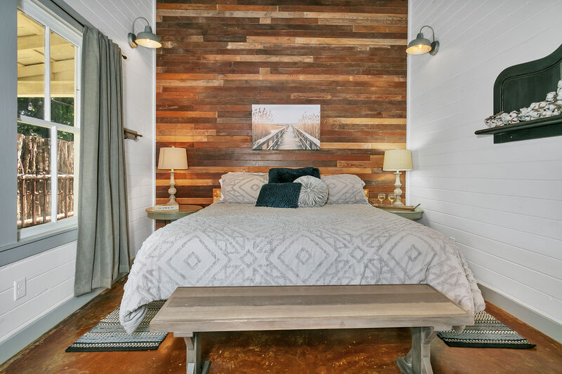 Escape to The Hideaway, a modern ranch-style guesthouse designed for comfort and style. Relax by the double-sided fireplace, soak in your private hot tub, or unwind beneath the stars by the fire pit. With a king bed, vaulted ceilings, and a private courtyard, this boutique retreat offers the perfect balance of seclusion and proximity to Fredericksburg’s wineries, restaurants, and Main Street.