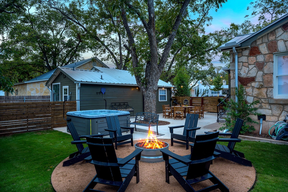 NEW listing by experienced Superhost! Nestled just half a mile from the heart of Main Street Fredericksburg, the Kaye Haus is a stylish home built with luxury and comfort in mind. The home includes 2 large bedrooms and 2 spacious bathrooms. The living room features a beautiful rock gas fireplace and handcrafted mesquite mantle as well as a queen sized pull-out sofa. Relax in your private hot tub, enjoy your coffee on the private back patio or cook in the new kitchen with large island.