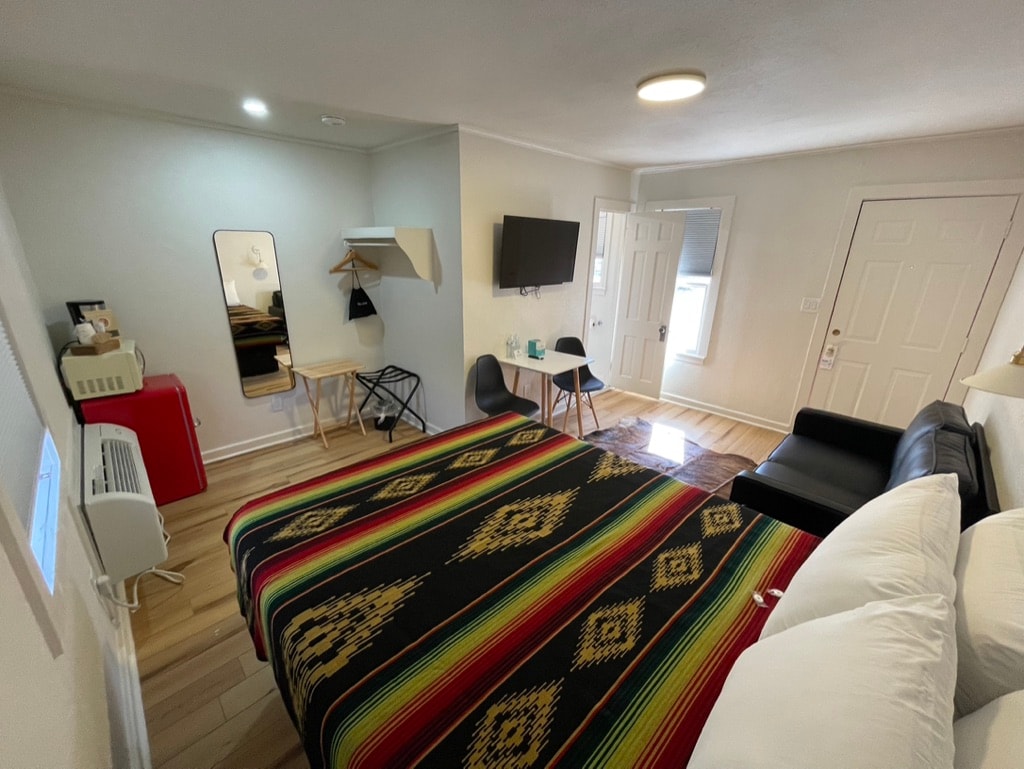 You won’t want to leave this charming, one-of-a-kind place. Relax with updated bedding and toiletries, hi-speed Wi-Fi, a mini-fridge and Keurig in a mid-century-modern-meets-Southwest setting true to the motel’s 1960s roots. The Press Room — originally reserved for the Associated Press when President Johnson was in town, it’s now dedicated to the motel’s unique history.