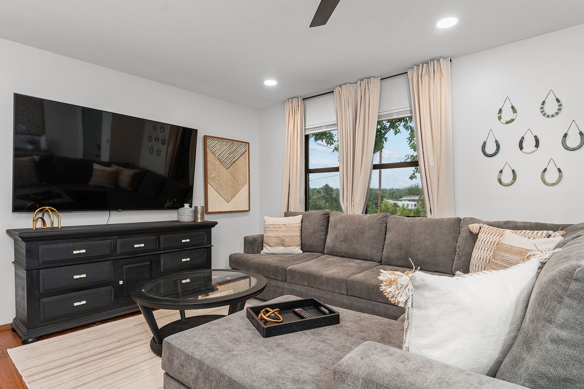 Situated in a mature neighborhood just over a mile to Main Street enjoy the comforts of our spacious home with the convince of being just a short drive or Uber ride to Main Street. Sleeping 12, our home offers the space for your large group to enjoy your time in Fredericksburg. With an open living, split floor plan, the primary bedroom has 2 Queen beds, front bedroom has a King bed & the back bedroom has 2 twins. The “office” located at the entry of the home has a day bed & trundle bed with tv!
