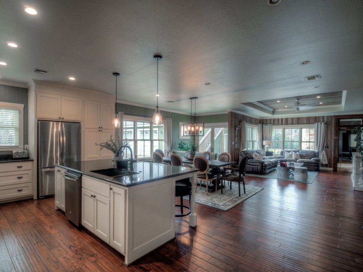 Situated in a mature neighborhood just over a mile to Main Street enjoy the comforts of our spacious home with the convince of being just a short drive or Uber ride to Main Street. Sleeping 12, our home offers the space for your large group to enjoy your time in Fredericksburg. With an open living, split floor plan, the primary bedroom has 2 Queen beds, front bedroom has a King bed & the back bedroom has 2 twins. The “office” located at the entry of the home has a day bed & trundle bed with tv!