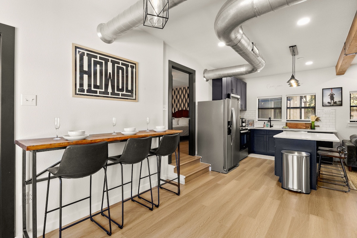 The German Cottage of your dreams! Enjoy a modern twist on a classic cottage one block off of Main Street with a surprise inside- a HIDDEN speak easy! Guests solve a 5 part riddle to find the code that unlocks the wardrobe door to “Narnia”! To find out how to access the speakeasy, you’ll embark on a short riddle experience through the home, leading you to unlocking the Narnia wardrobe! Step through & Inside you’ll find the rustic speakeasy with a Hill Country prize waiting for you inside!