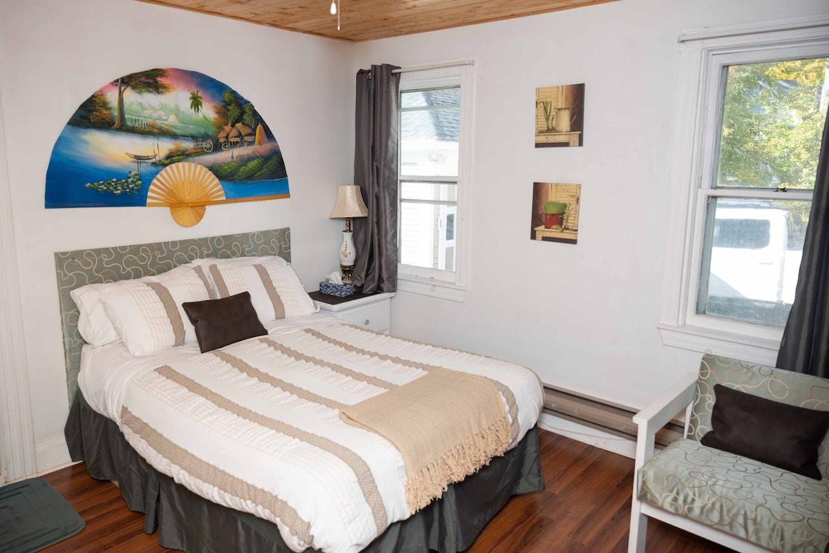 This humble and clean private room (200 square feet) with private entrance is located within 5 min walk of downtown Fredericton and 10 min walk from UNB. This unit is located in the back of our riverfront house. It is part of a big house on Waterloo Row, by the Wolastoq River and near the walking bridge. Perfect for guests who want to be close to downtown without paying too much.