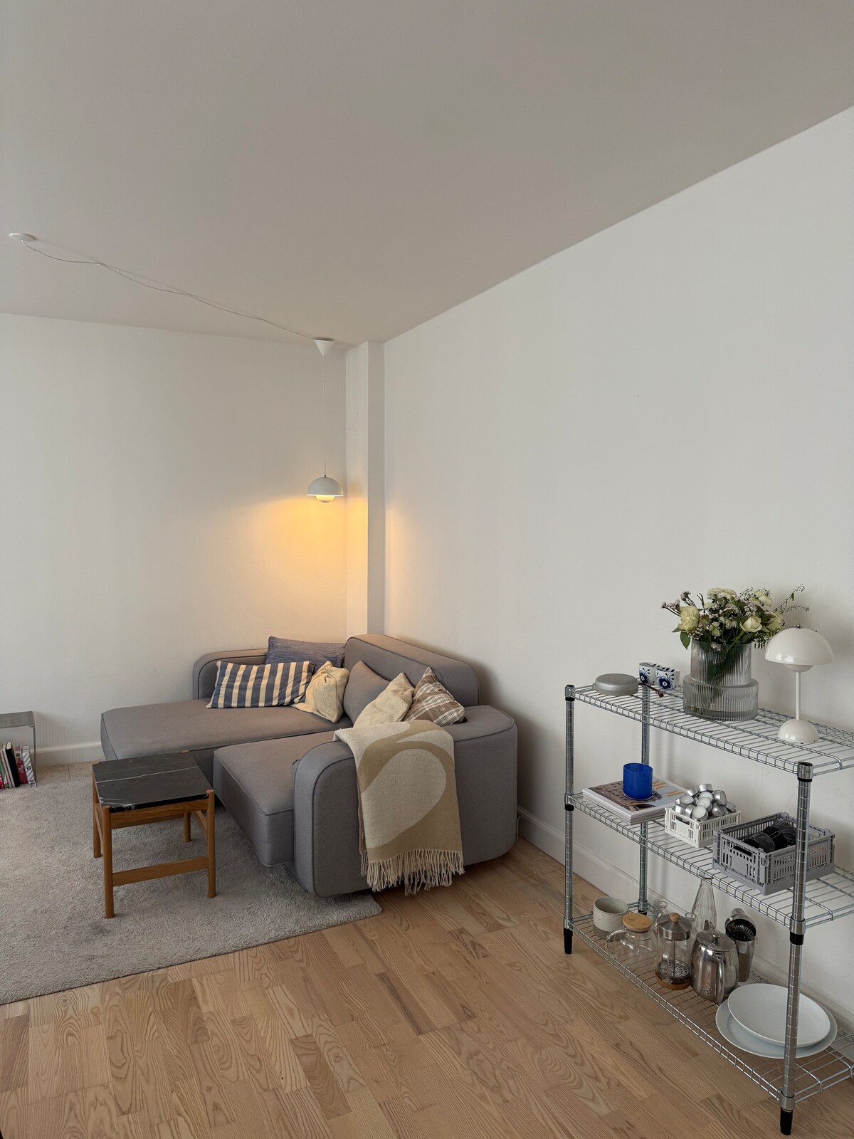 Welcome to our cozy Scandi home in the most desired family-friendly neighbourhood in Copenhagen! You are perfectly connected to all parts of the city by bus, train and metro. 30 min from the airport, a direct bus (2A) to Central Station and the main attractions. The apartment has a compact bedroom with a brand new king size bed from France, organic luxury cotton and linen bedding, a kids crib (up to 5 y.o.), baby and toddler items, high-quality kitchen amenities, tea and coffee, all essentials.
