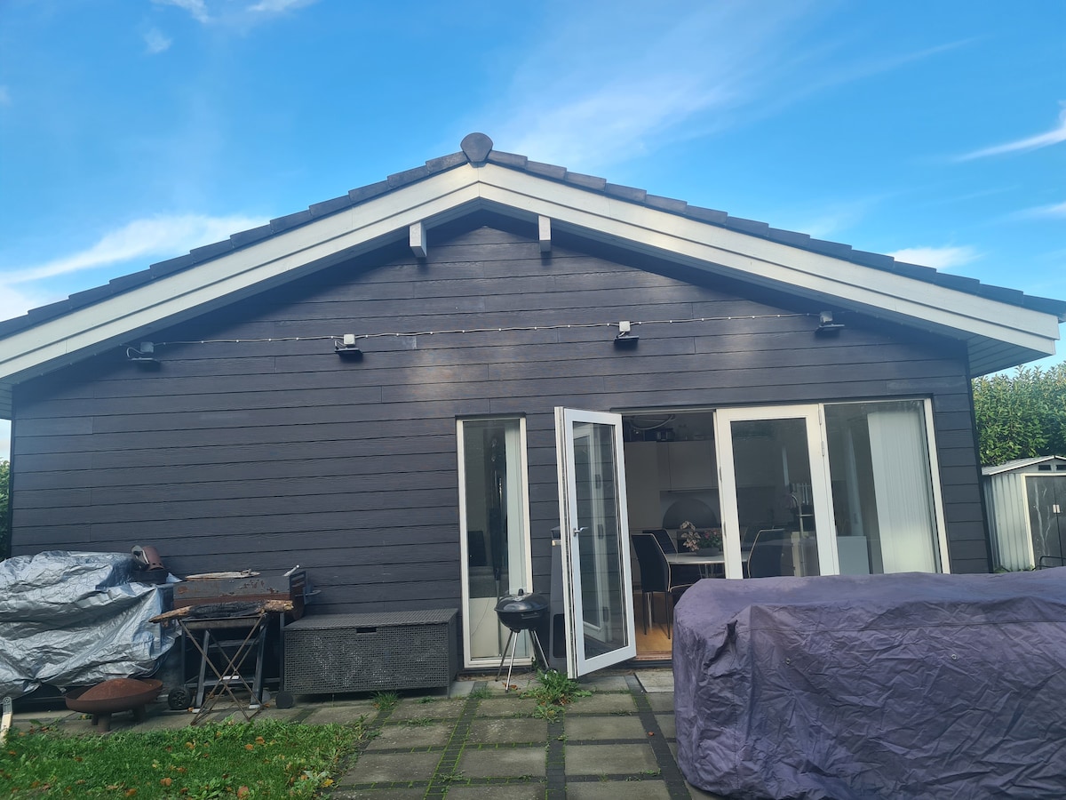 Let this be your wellness hub near Copenhagen. The outdoor electric sauna and cold-plunge are accessed via the master bedroom (double bed) + own bathroom. There's a bunk-bed (70x160cm) and a creative space in the kids-room. The second bathroom has a bathtub, and is accessed from the spacious dining + lounge area. The cozy open kitchen completes the social space. The private garden equally invites for relaxation. The cat is friendly (own door, automatic food and water). 10 min walk from train.