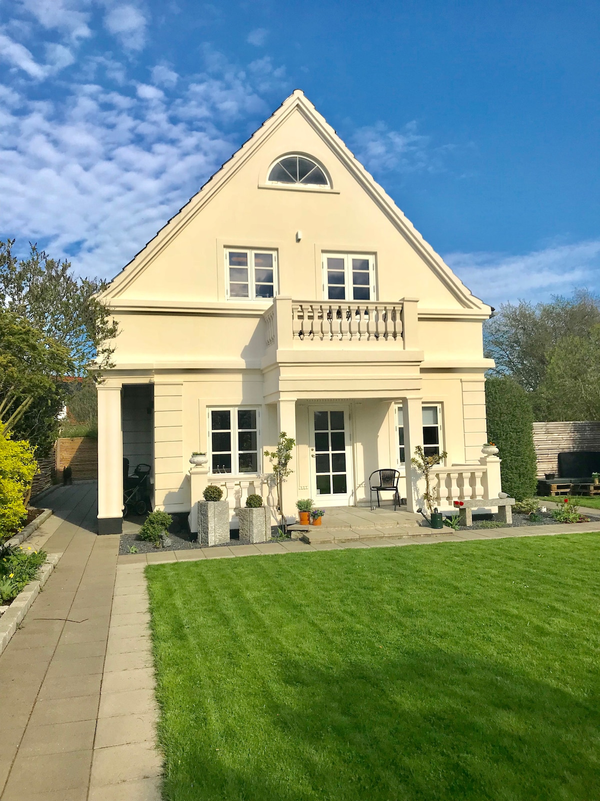 Charming villa, located on a cul-de-sac up to the forest "Det Danske Schweitz" and 20 min drive from Copenhagen and 8 min from a lovely beach. You will be seduced by the lovely cozy interior and the lovely private south-west facing garden with a large covered terrace and greenery everywhere you turn.