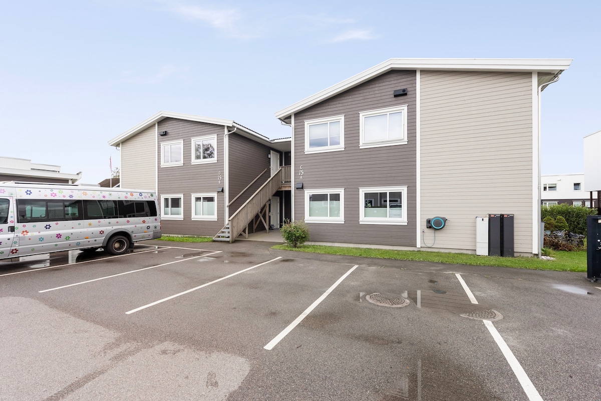 Kök och allrum med 155 cm dagsäng och havsutsikt. Stort sovrum med 160 cm dubbelsäng. Kök med ugn/induksjonshäll, kyl/frys, disk och micro. Bad med dusch, tvättmaskin och torktumlare. Altan och stor uteplats med gräs. Parkering utanför. 10 minuters gånge til vattnet med stränder, klippor och båthamn, skogen 1 minut bakom huset. 15 min att köra til centrum, 10 minuter til Nordby shopping. 20 minuter till Koster med båt. Lugnt område.