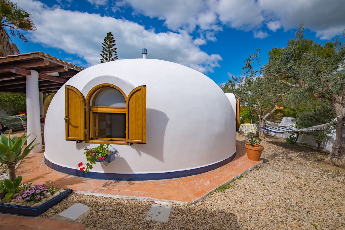 This lovely dome shaped bungalow is in the heart of Maragani, one of the most breathtaking beaches in Sciacca. The bungalow itself is located in the gated community of Residence Oasi. It is set back off the main road that leads to the beach of which is only about 200 meters away. There are about 40 bungalows in total, each having its own private property and gated entrance making it very private and secluded. Although we are in a rural area wi-fi and cell phone reception is available.