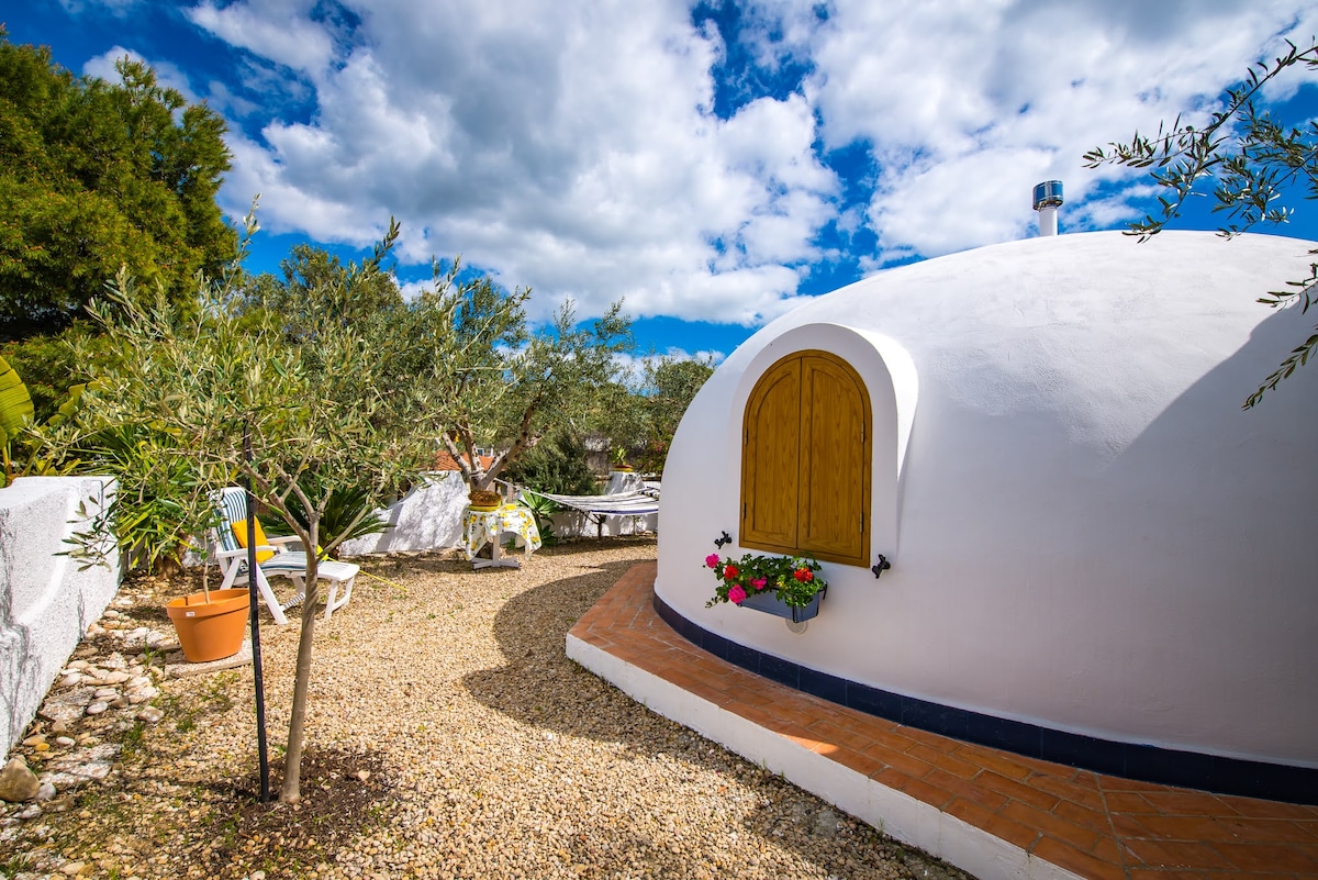 This lovely dome shaped bungalow is in the heart of Maragani, one of the most breathtaking beaches in Sciacca. The bungalow itself is located in the gated community of Residence Oasi. It is set back off the main road that leads to the beach of which is only about 200 meters away. There are about 40 bungalows in total, each having its own private property and gated entrance making it very private and secluded. Although we are in a rural area wi-fi and cell phone reception is available.