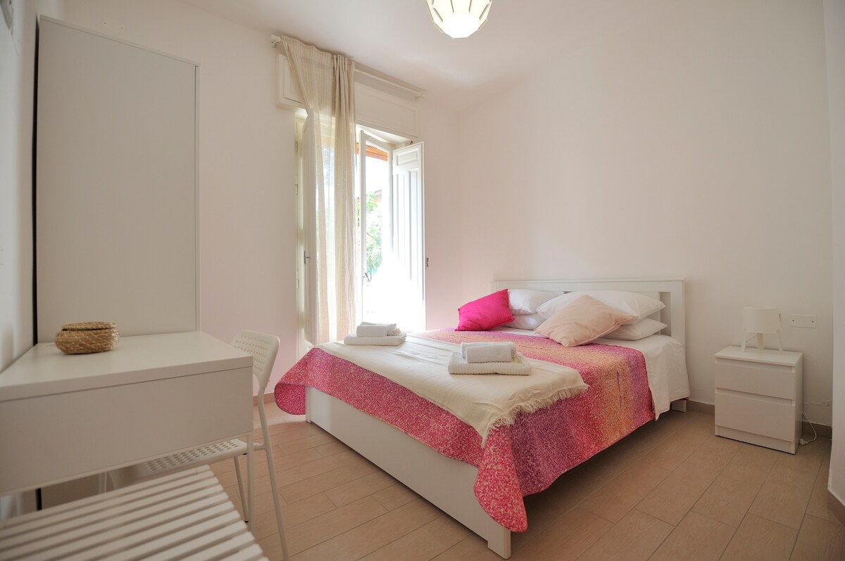 Bucură-te de o experiență stilată în această locuință situată central cu acces rapid la plaja Veranda are o superba vedere la mare. Apartamentul confortabil are un dormitor cu pat matrimonial si deschidere spre baie si toaleta separata. Camera de zi se afla in spatiu deschis cu bucataria .Bucataria e utilata complet Un corner coffee dotat cu masina de cafea si dulciuri pentru mic dejun italian. In perioada iunie2025-martie 2026 ar putea uneori sa existe zgomote de la santierul parcului.