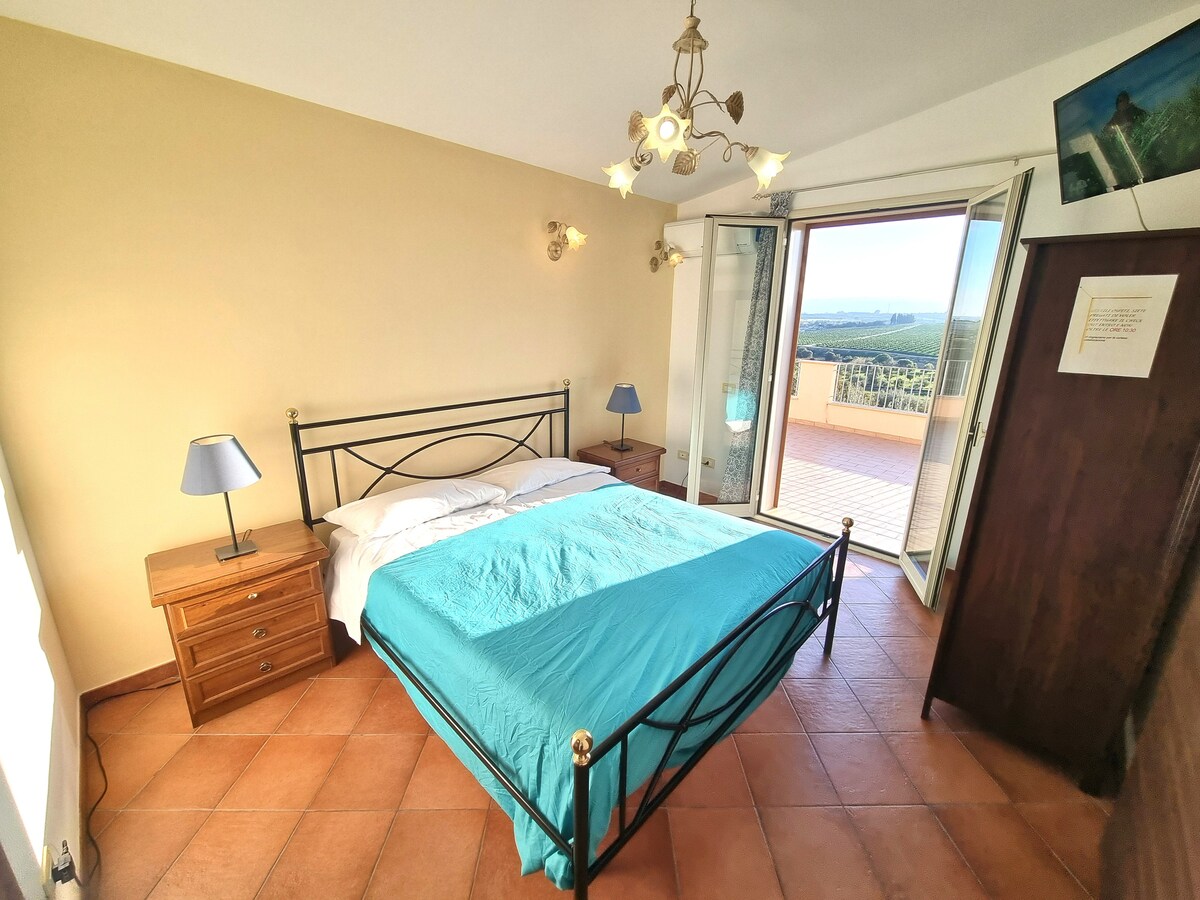 Nepita grows in a modern country house, surrounded by a large garden at about 700 meters above sea level, from which you can enjoy an enchanting view of the surrounding hills. The house has three double bedrooms with private bathrooms, two in the bedroom and one just outside. Guests can also use several common areas, such as a living room, a dining room, a terrace with dining tables, a swimming pool with solarium and the entire outdoor space.