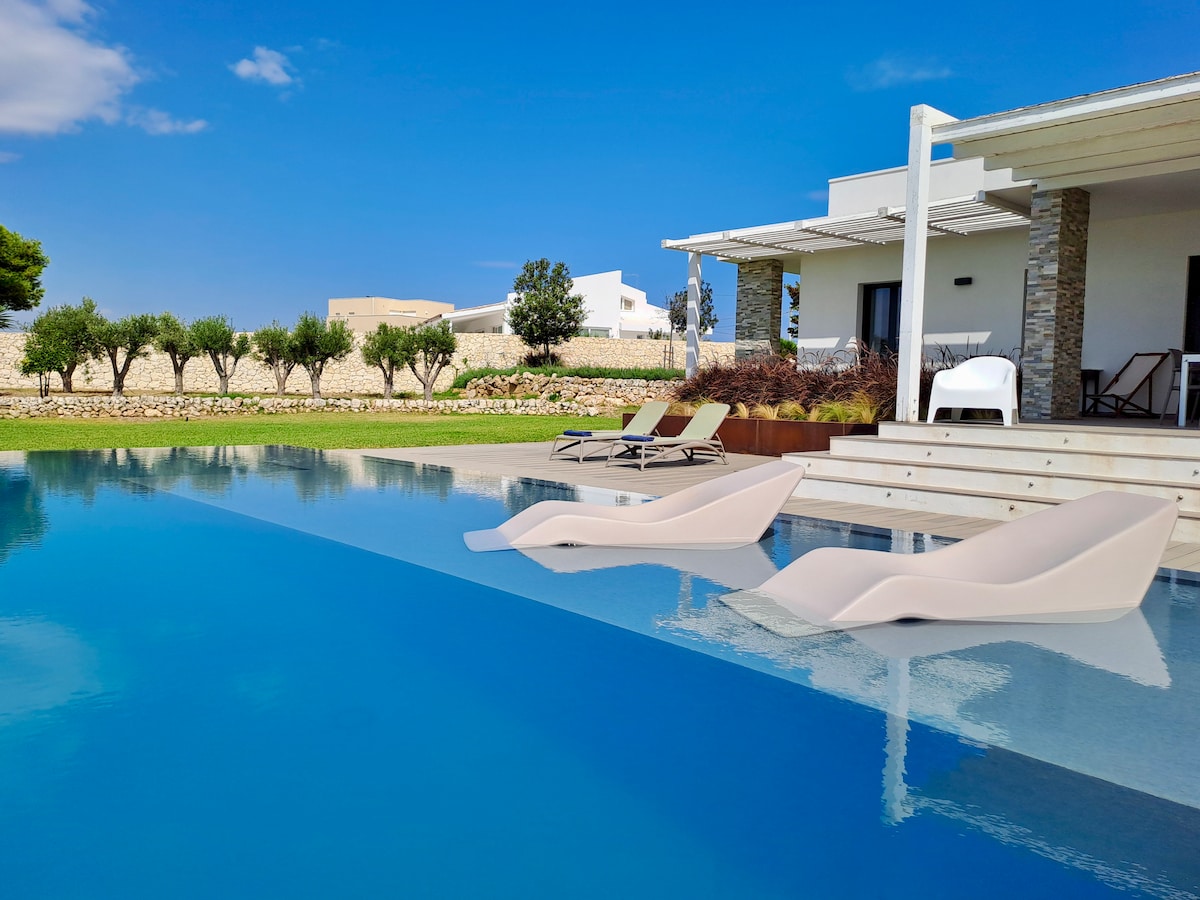Nel cuore dell'area marina protetta del Plemmirio, villa indipendente di 90mq con piscina a sfioro infinito di 80mq, che offre una vista panoramica mozzafiato sulla costa siciliana dal Plemmirio sino a Capo Passero. La villa è circondata in da un parco di proprietà di 8000 mq ricco di vegetazione tipica siciliana (ulivi, carrubbi, mandorli, pini mediterranei, alberi di gelso, alberi di fico, giardino roccioso con macchia mediterranea).