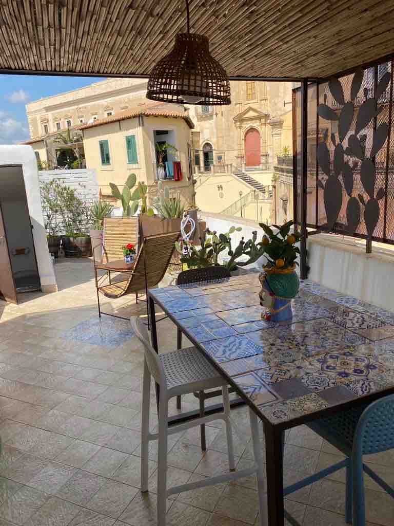 Situata in una antica casa signorile, tramite delle scale interne si accede alla camera con terrazza adiacente, completa di tutti i comfort ed appena ristrutturata. La stanza si trova a pochi metri dalla Cattedrale di Noto, dal Palazzo Ducezio e dal fantastico Palazzo Nicolaci. Dista circa 8 km dal mare, 10 km dall' Oasi Vendicari e 30 km dalla città di Siracusa. Facilmente raggiungibile dall'aeroporto Fontanarossa di Catania (circa 50 minuti di strada).